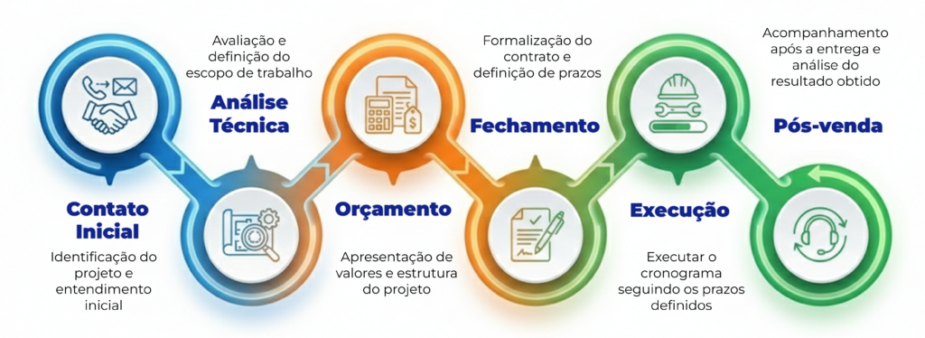 Do projeto à execução, passando pela manutenção, modernização e monitoramento, garantimos máxima qualidade técnica, total conformidade com as normas vigentes e resultados sustentáveis para cada cliente.